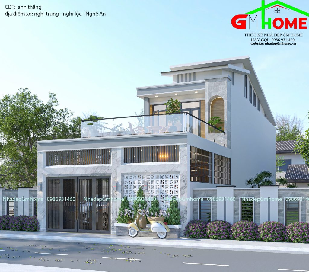 - Thiết kế nhà a Cảnh ở Cẩm Xuyên – Hà Tĩnh KT: 19,5×11,0m, kinh phí 1.3 tỷ
