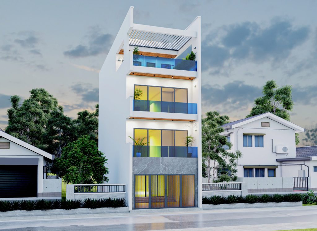 tầng 2: 01 ph. khách, 01 bếp, 01 ph làm việc, vs
